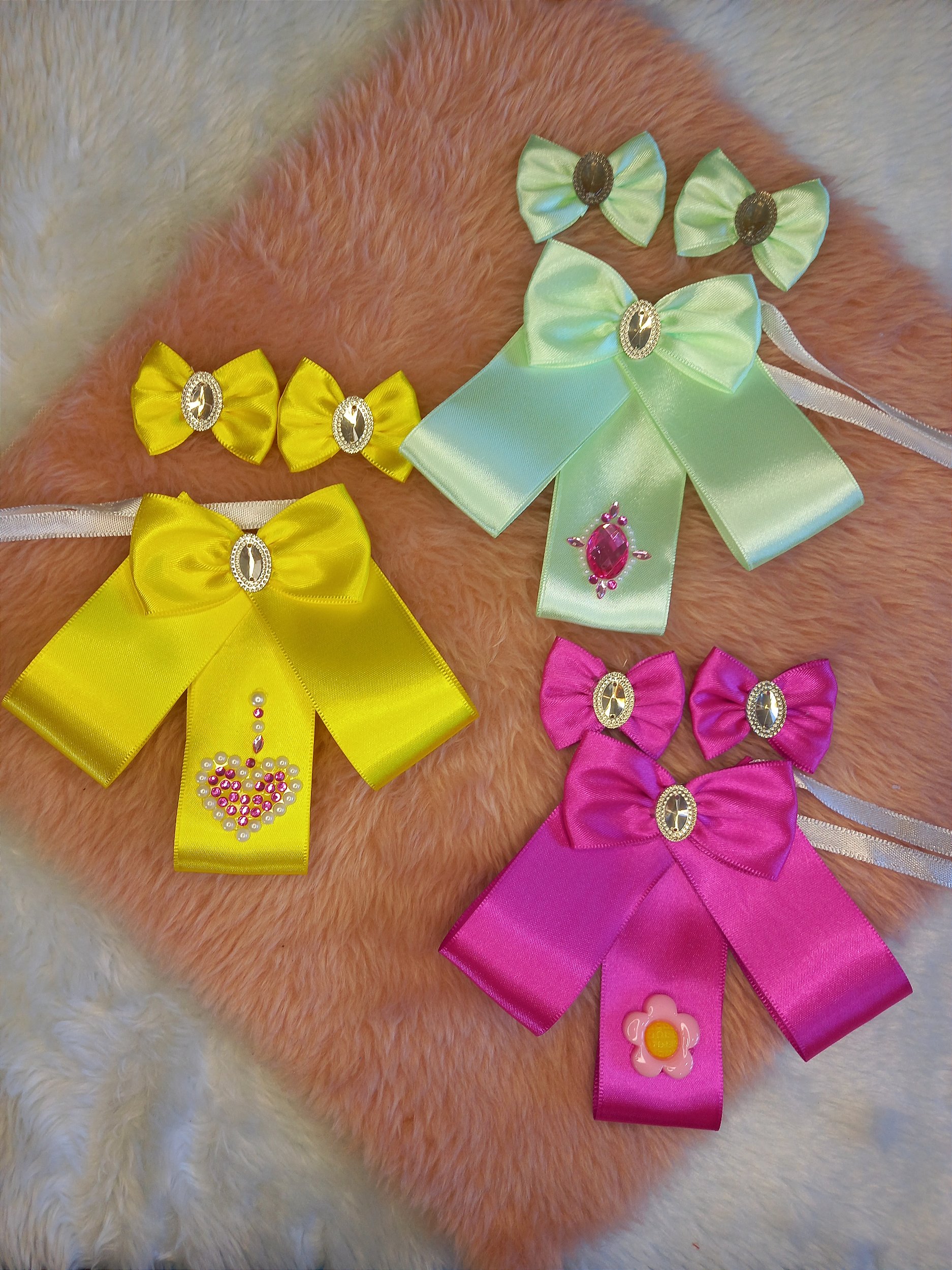 Cada embalagem contém 5 gargantilhas e 10 laços.