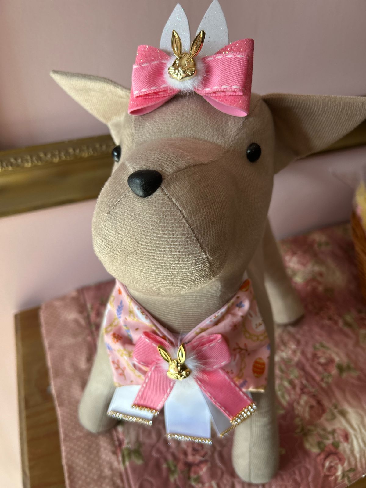 uma gargantilha em tecido e fitas, tematica de pascoa