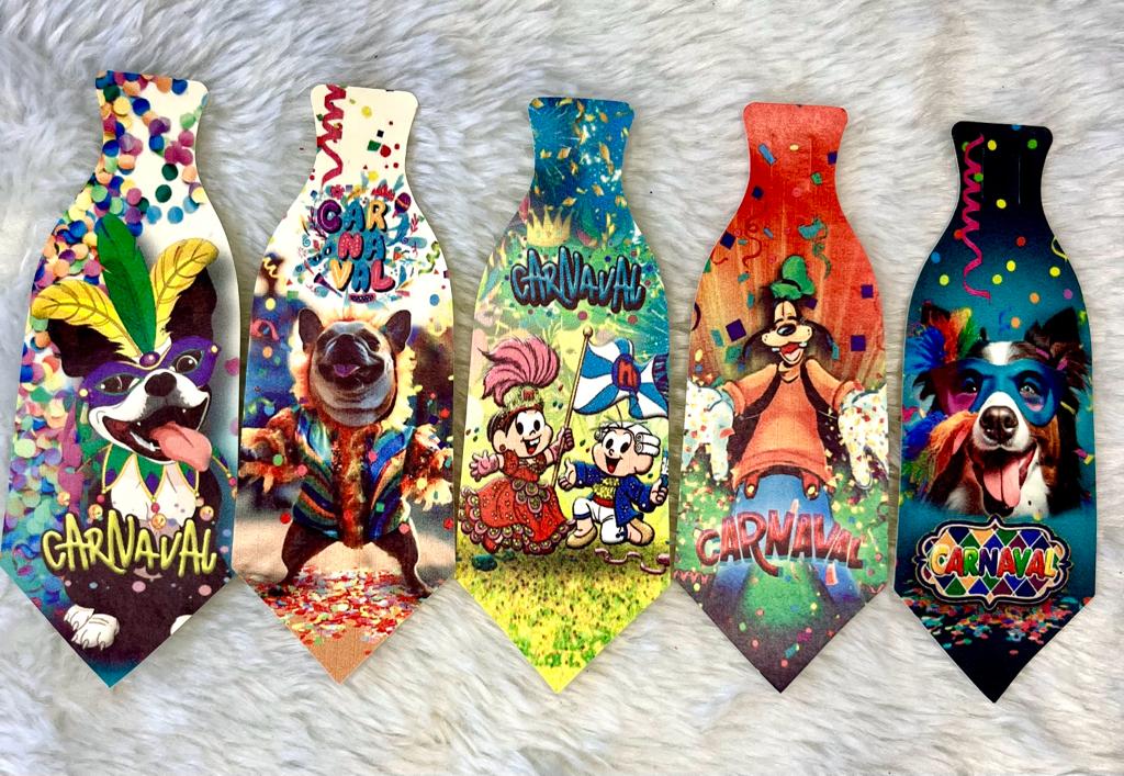contem 10 gravatas estampas tematicas de carnaval, tamanho medio 12 cm