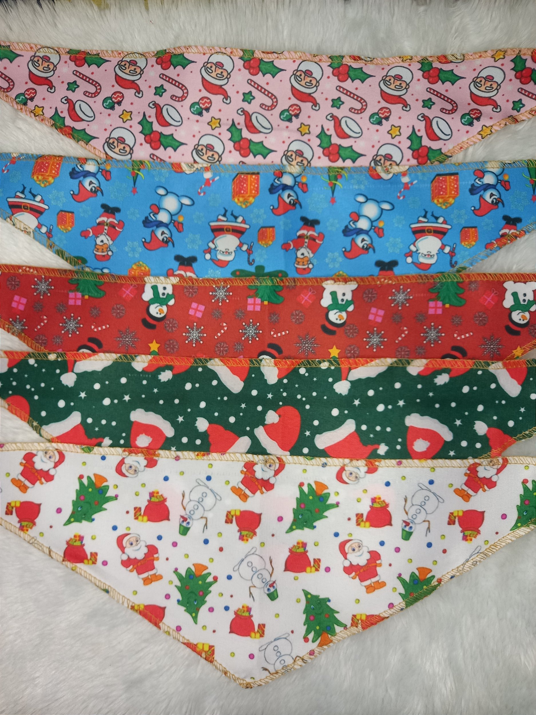 Contém 10 bandanas temáticas de natal, estampas sortidas. Tamanho grande.