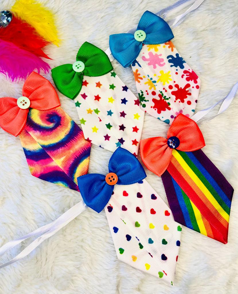 Contém 5 gravatinhas pug, tamanho médio, temática de carnaval