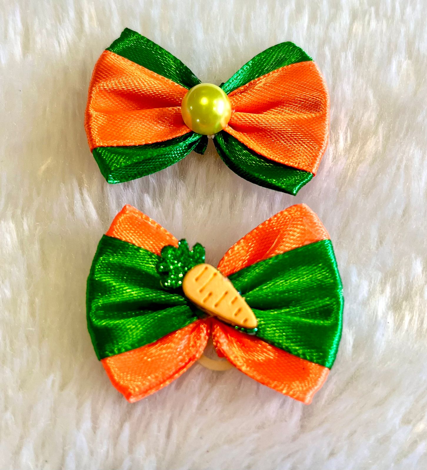 contem 10 laços especial de pascoa, cores verde e laranjas e apliques de cenoura e meia perolas. tamanho medio, elastico resistente